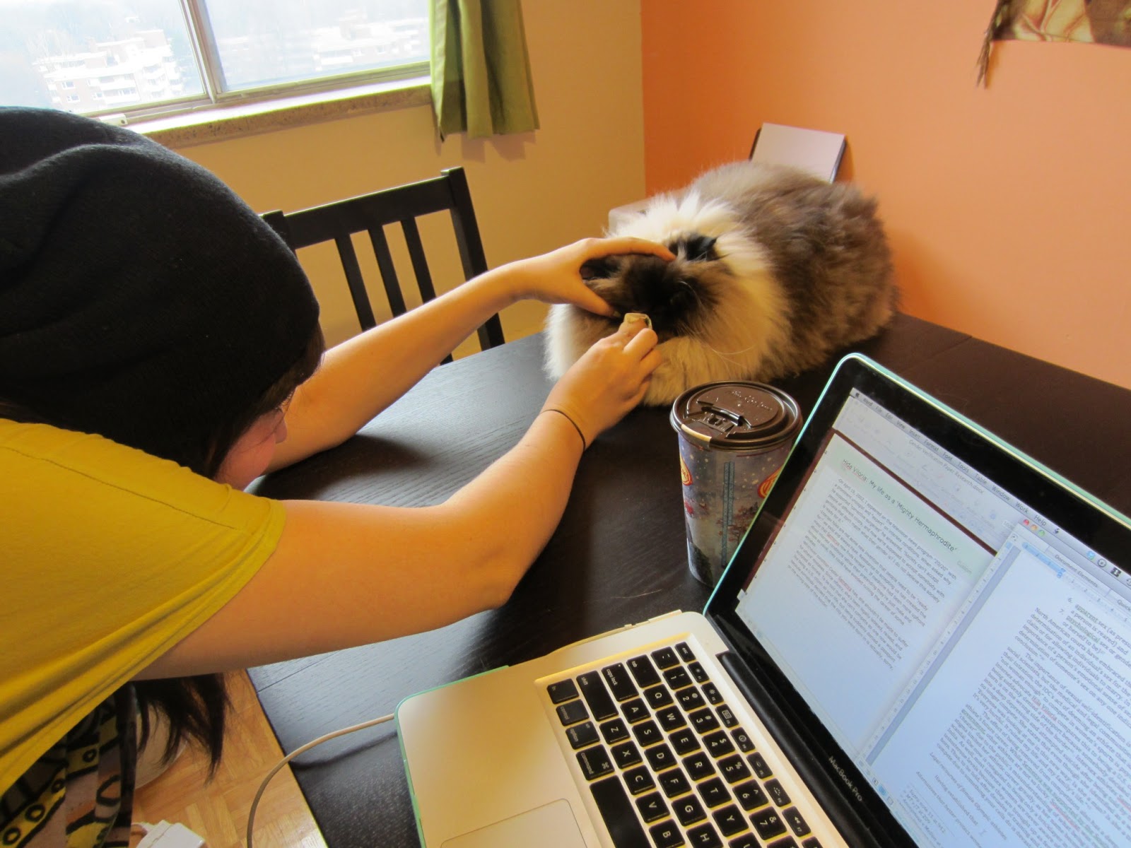 Last week I wrote about one of my friends who came over to study with me during exams and ended up tormenting Kitten (he liked it).  As promised, this week's post is about my study sessions with Kitten's best friend, Elena.
