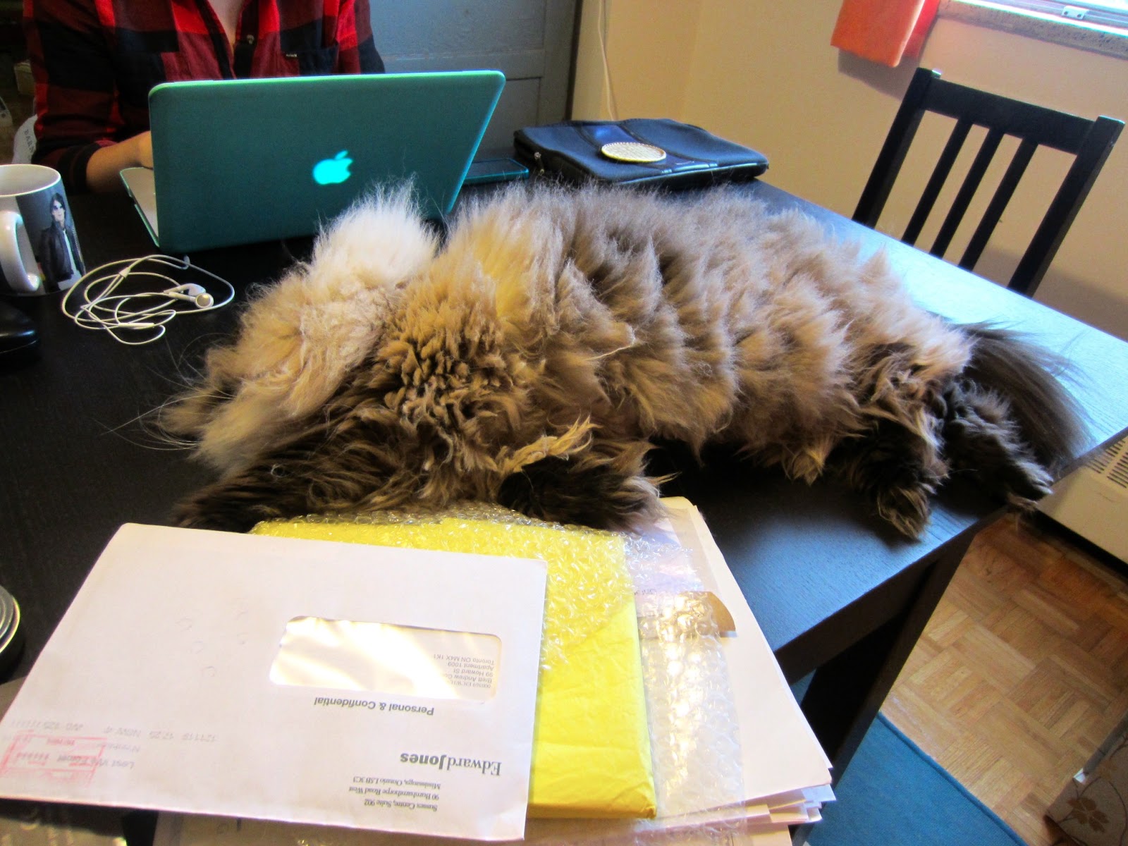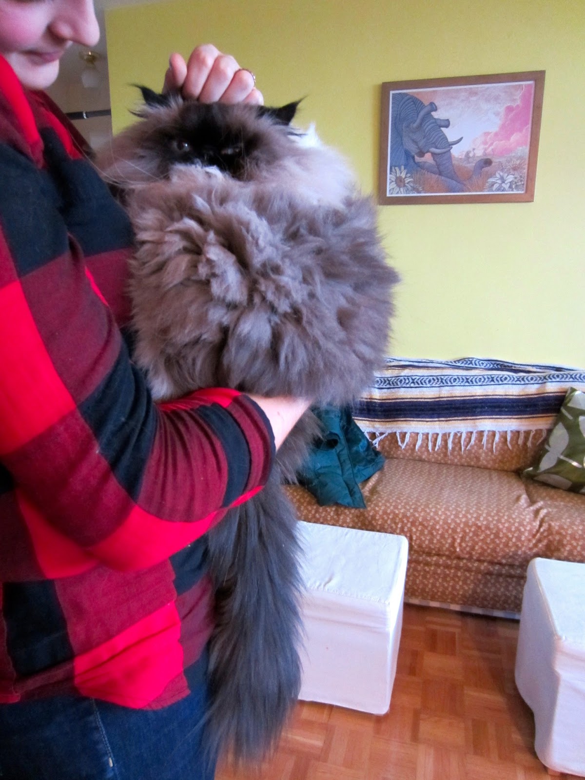 Kitten and Elena go wayyyyy back. All the way back to this past June (and for a cat, that's like, pretty far back). Elena came to cat-sit Kitten while   I was away over the summer (not to be confused with my other cat-sitter, Lindsey, who blogged about her Kitten-sitting experiences on her own blog: Happy or Hungry), and the two of them had a totally fab time and Kitten totally did not try to molest Elena or anything.