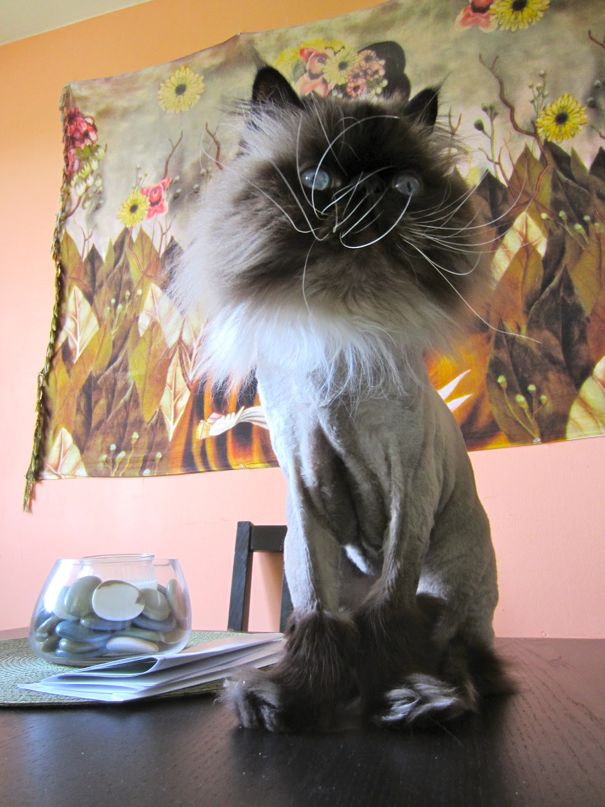 This, my friends, is the famed Lion Cut. It is not some cruel invention of mine; it is a tried and true haircut for longhair fancy cats, and if Kitten is one thing, it is a longhaired fancy cat.